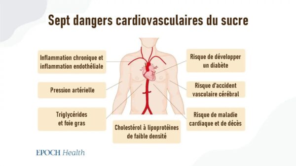 Pourquoi la consommation de sucre augmente-t-elle le risque cardiovasculaire ? Le sucre génère une inflammation chronique dans l’organisme. Lorsque les vaisseaux sanguins sont enflammés, le cholestérol augmente pour réparer les vaisseaux enflammés. L’excès de cholestérol déposé dans les vaisseaux sanguins peut se transformer en plaque et en blocages, ce qui entraîne une élévation de la tension artérielle, des accidents vasculaires cérébraux et d’autres maladies cardiovasculaires.
