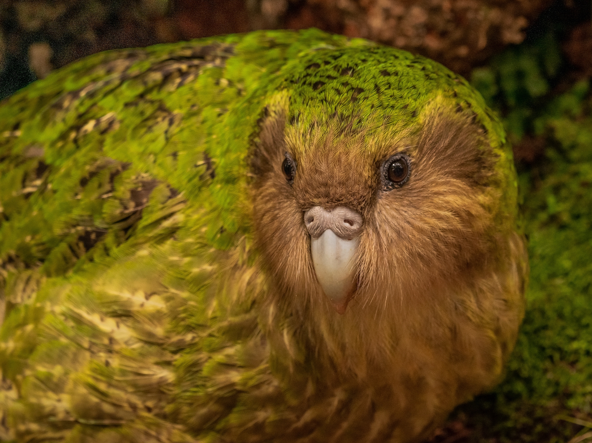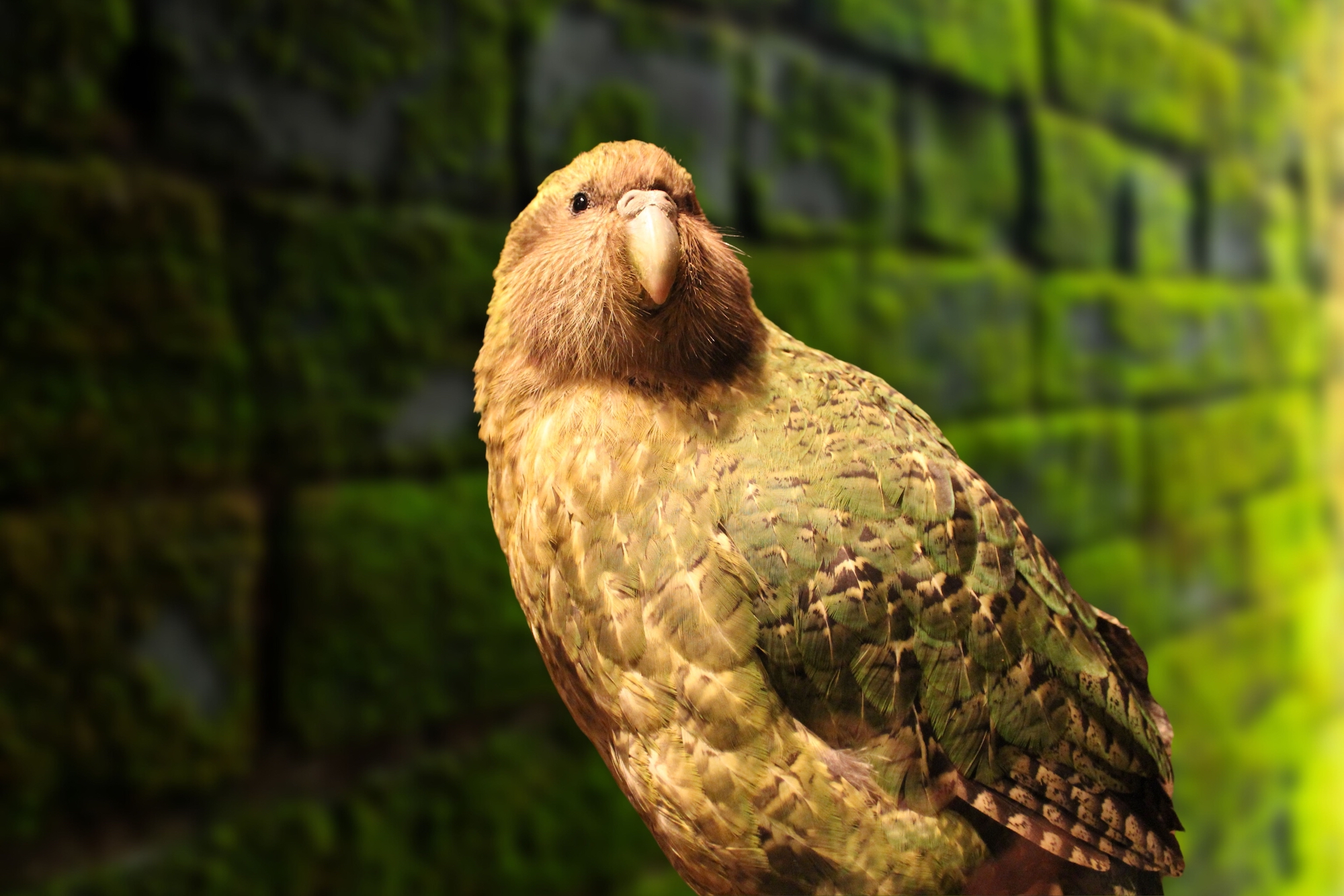 Dites bonjour au kakapo, ou perroquet-hibou, certainement l’un des oiseaux les plus étranges de la planète. Il a le corps d’un énorme perroquet vert et la tête d’un hibou. Incapable de voler, il se déplace en se dandinant et est doté d’une voix forte et puissante.