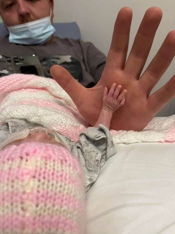 Après avoir été emmenée à l’hôpital St Peter avec Oliver, l’accouchement a été déclenché à 19 h 30. Presque deux heures plus tard, à 21 h 17, Lauren a donné naissance à Isla qui ne pesait que 535 grammes.