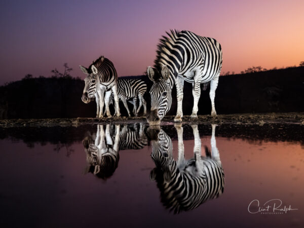 En septembre 2022, Clint s’est joint à un groupe de photographes qui ont passé la nuit dans une cabane au Zululand. Il est arrivé au milieu de l’après-midi pour assister au coucher du soleil et est resté éveillé toute la nuit pour observer les animaux.