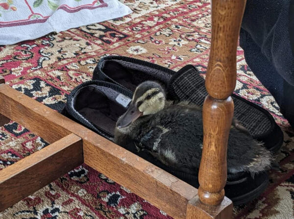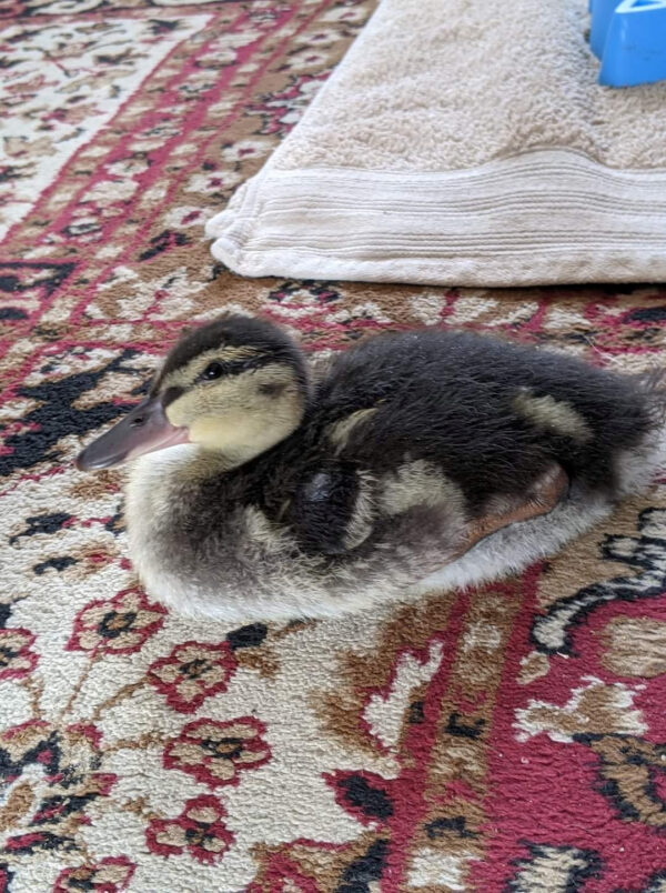 Le couple a appris au caneton à faire ses besoins sur des serviettes.