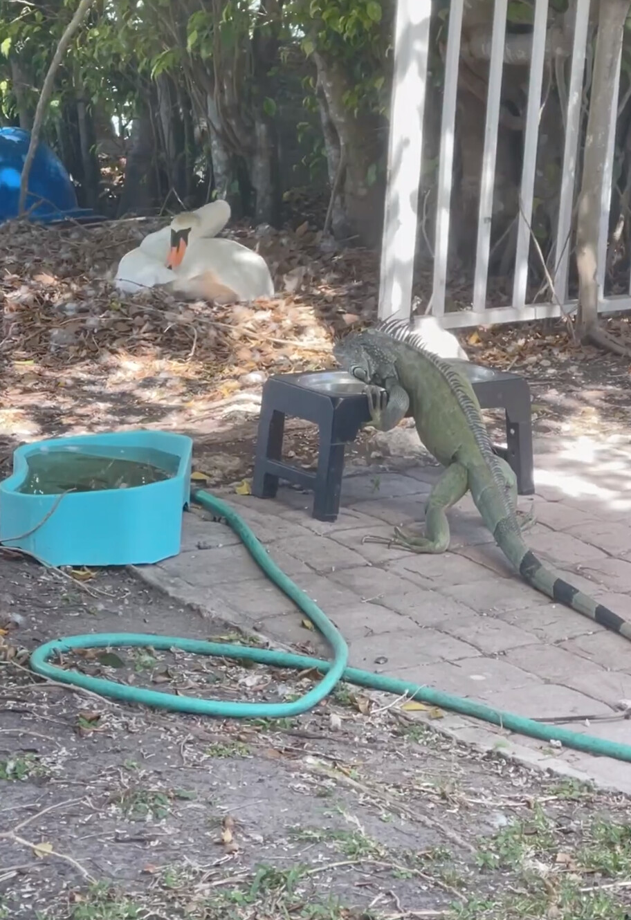 Un mois après avoir emménagé, M. Webber a regardé dans son nouveau jardin et a vu un cygne passer. Un mois plus tard, il y avait deux cygnes. Ces oiseaux ne sont pas originaires de Miami et les observations sont relativement rares. Des lois strictes les entourent, comme l’obligation de leur couper les ailes, de sorte qu’ils sont empêchés de voler.
