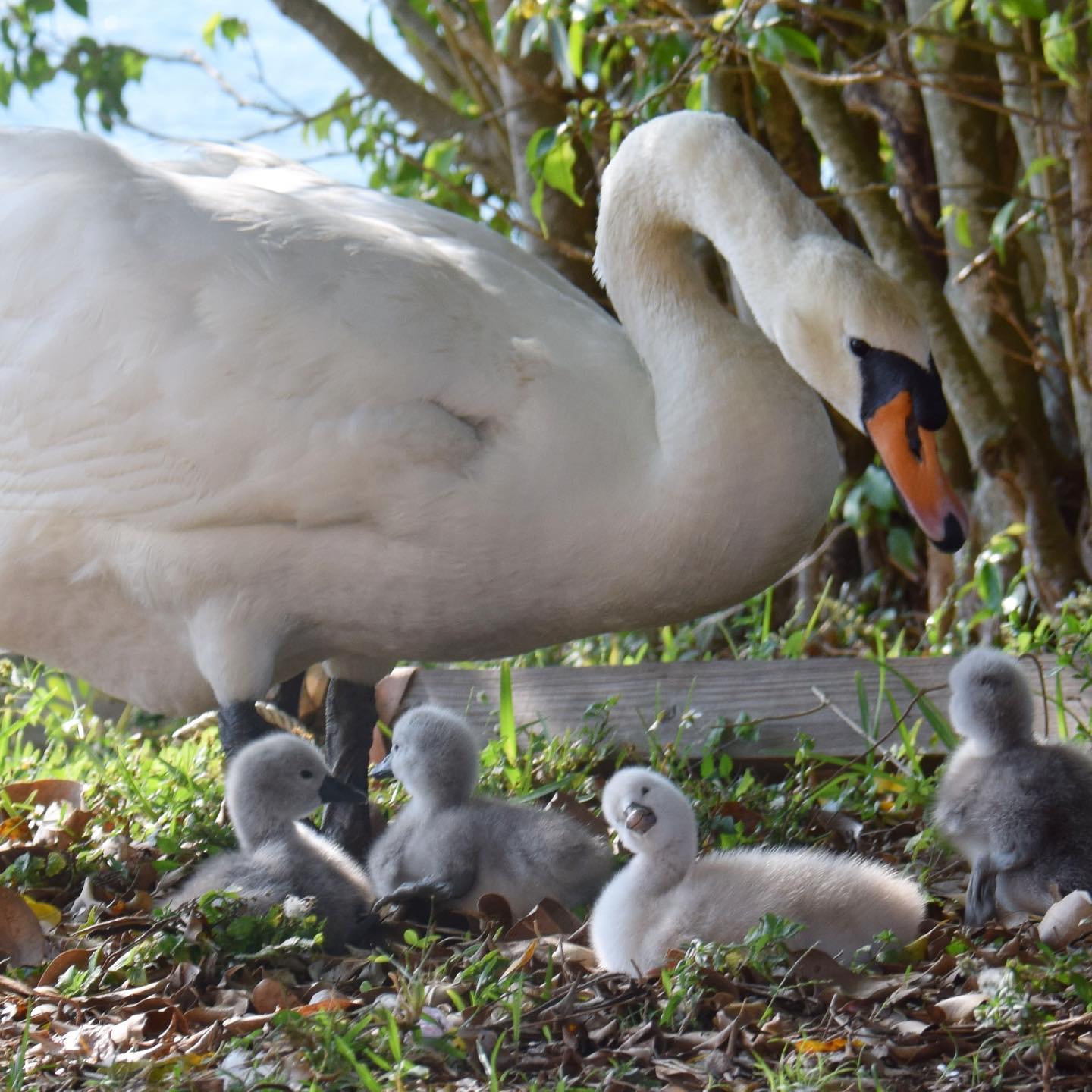 Peu après son emménagement, un couple de cygnes a commencé à entrer dans son jardin et, au bout d’un certain temps, ils lui montraient fièrement leurs nouveaux bébés.
