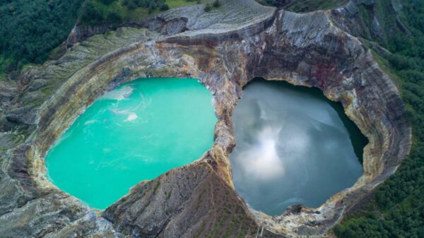 Ils ressemblent à des lagons baignés de soleil dans lesquels on pourrait plonger. En réalité ces trois lacs sont des cratères et l’eau y est chargée de souffre. Situés au sommet du mont Kelimutu sur l’île de Flores, en Indonésie, ils ont chacun des couleurs différentes et changeantes.