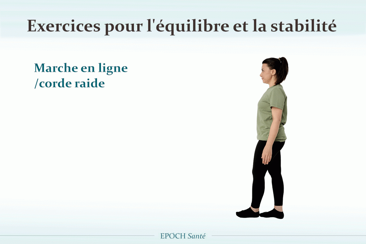 Également connue sous le nom de marche en tandem ou talon-pointe, la marche en ligne ou sur corde raide est une autre manœuvre utilisée par la police lors des tests de sobriété sur route. Elle constitue un grand défi d’équilibre en plaçant les pieds dans une base d’appui étroite tout en effectuant un mouvement dynamique. Cette activité nécessite également de l’espace, ce qui la rend idéale pour être exécutée immédiatement après la marche à reculons.