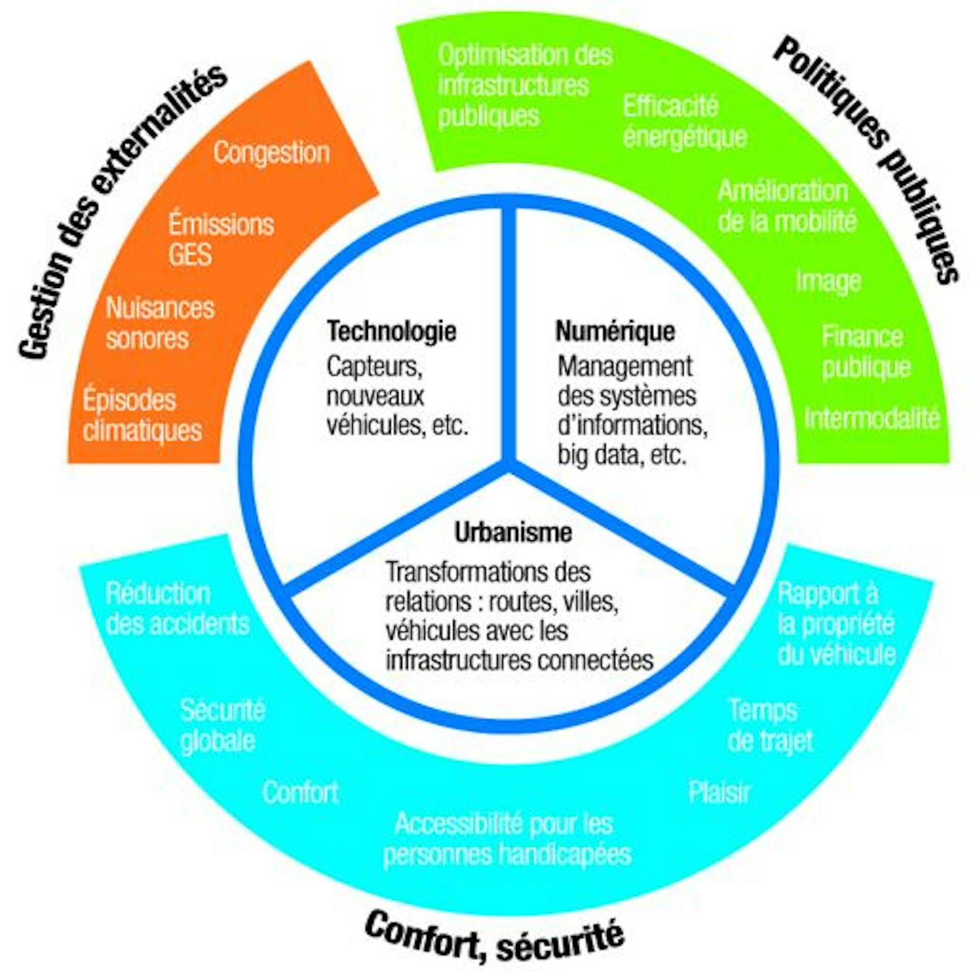 Dans ce nouveau contexte, la relation existante entre l’homme, l’automobile et son environnement proche (infrastructures routières, design urbain) est en cours de réinvention avec le concept de transport intelligent ou de système de transport intelligent (ITS ou STI). Deux grands paradigmes sont aujourd’hui réinventés.