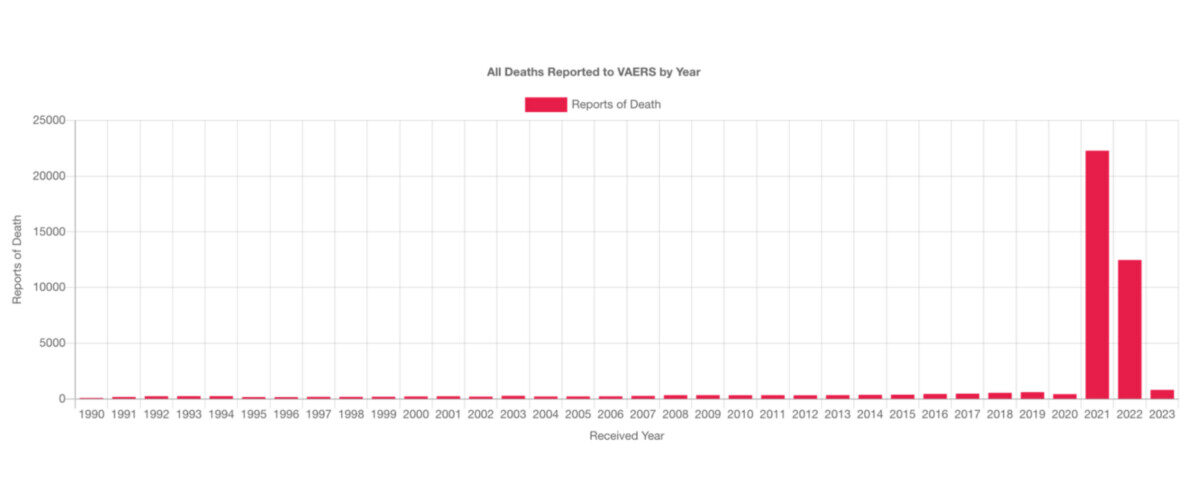 Compte tenu des décès signalés pour tous les vaccins confondus, le nombre a bondi de 420 décès en 2020 (avant la vaccination Covid) à 22.278 décès en 2021 (avec la vaccination Covid), soit une augmentation de 5304%.