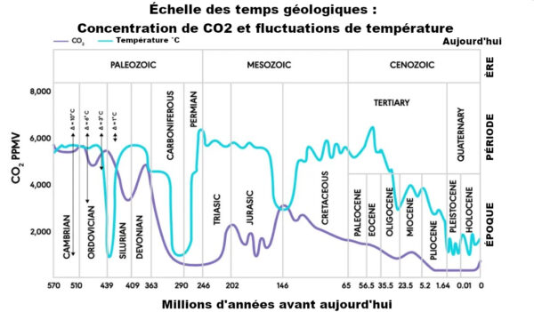 M. Moore a montré un graphique illustrant l’évolution du CO2 et de la température au cours des 500 derniers millions d’années.