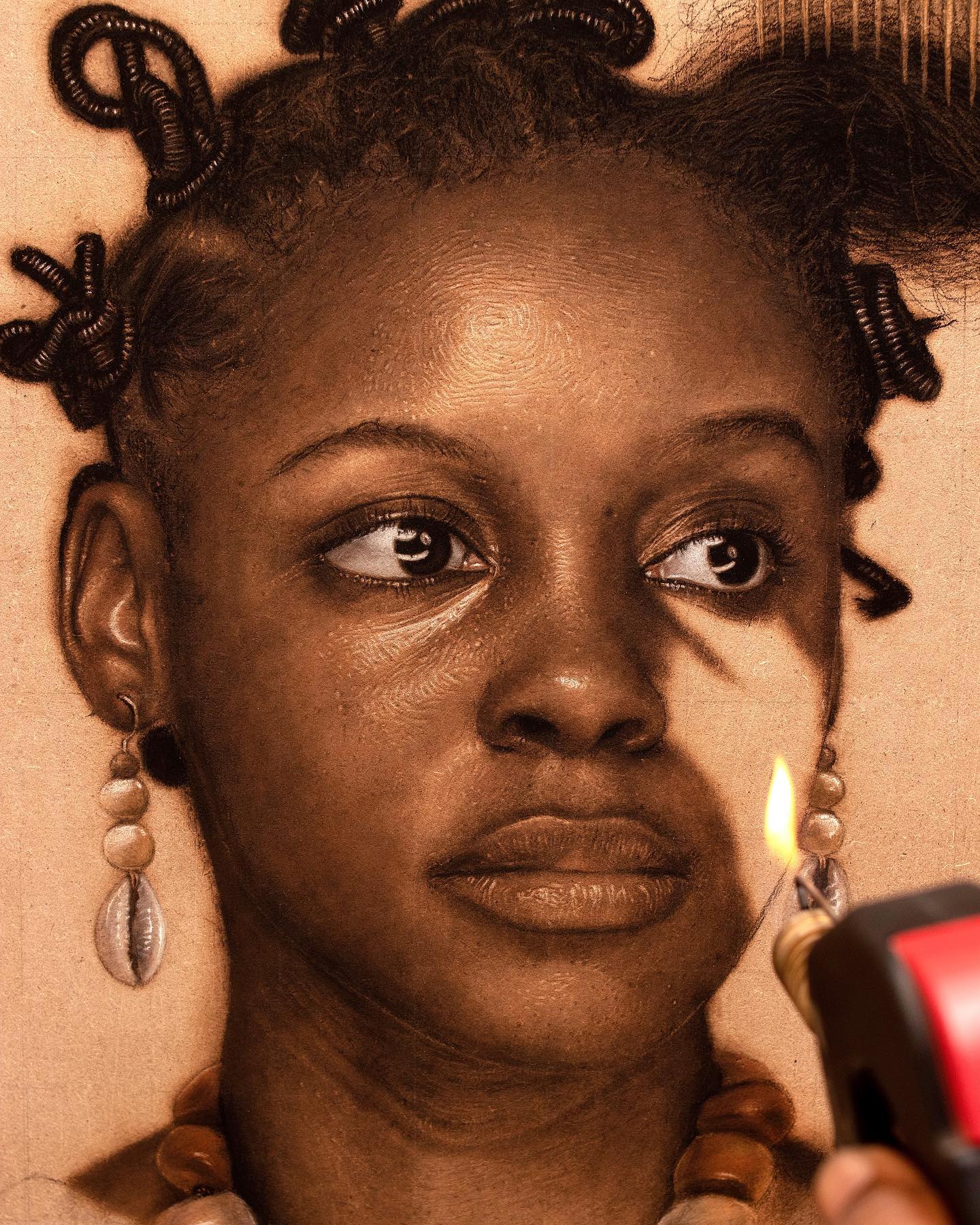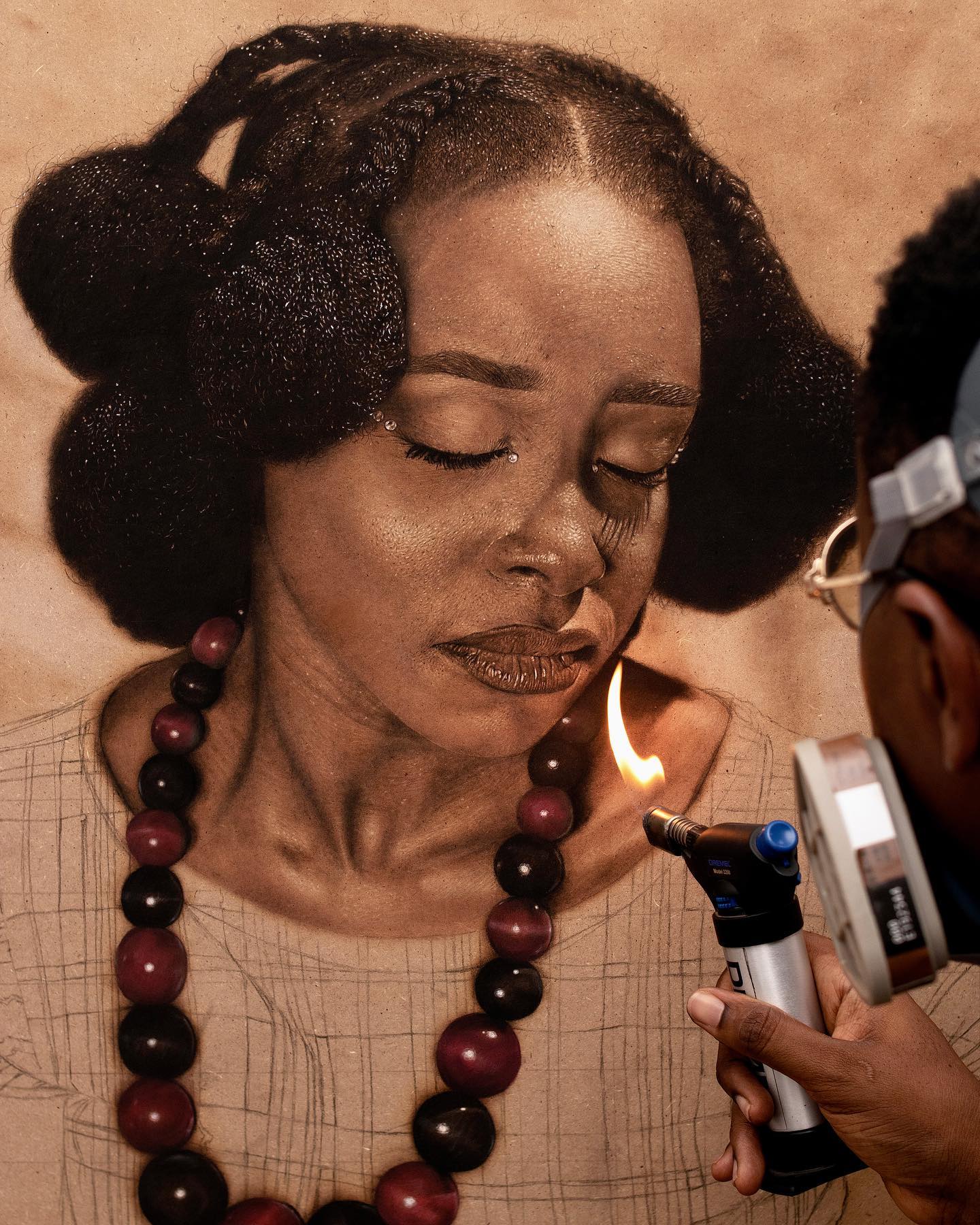 Un artiste nigérian autodidacte, passionné par la représentation de sa culture, a trouvé un moyen unique d’utiliser le feu et les lames de bois pour réaliser des portraits incroyablement hyperréalistes.