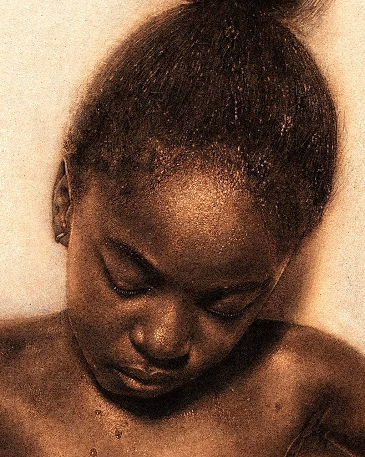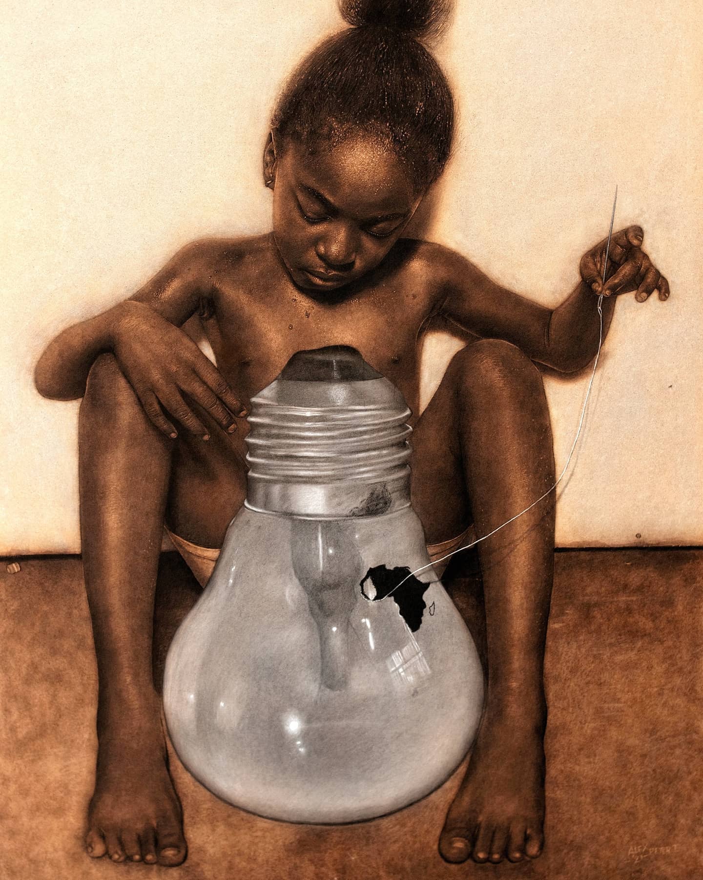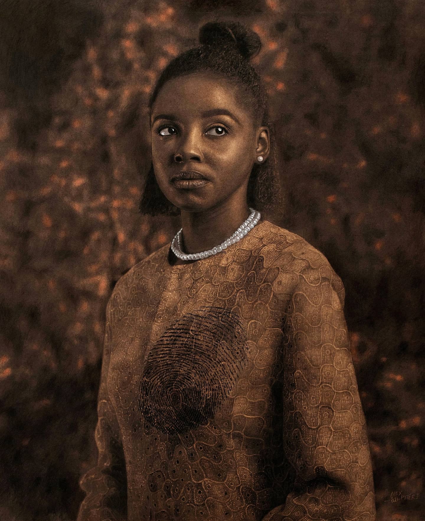 Alex Peter Idoko, 30 ans, est basé à Abuja, au Nigeria, et pratique l’art depuis 23 ans, dont 15 de manière professionnelle. Il décrit son domaine comme « le surréalisme et l’hyperréalisme » et, au fil des ans, il est passé maître dans l’art de la pyrogravure, autrement dit de l’écriture avec le feu.