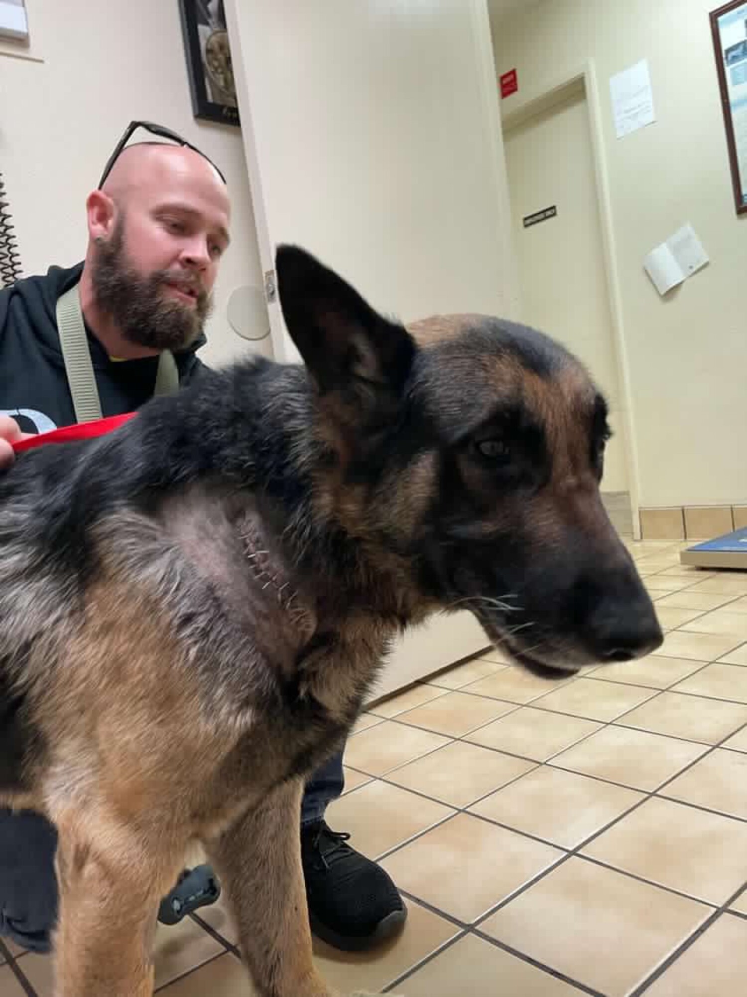 La famille s’est mobilisée pour soutenir Cooper, qui a été opéré en janvier. La majeure partie du muscle entourant son cou a dû être enlevée, ce qui a nécessité 47 points de suture au total. Il s’agissait d’une intervention risquée pour le chien âgé, mais non seulement Cooper s’en est sorti, mais il est sorti de la salle d’opération en courant vers sa famille qui l’attendait.