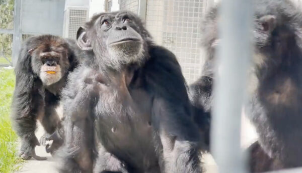 Le timide chimpanzé femelle a quitté lentement son enclos, « émerveillée » de voir le ciel pour la première fois. Sentant son inquiétude, un chimpanzé nommé Dwight s’est approché le premier pour offrir un câlin à sa nouvelle colocataire afin de la calmer, et Vanilla a sauté dans ses bras. Depuis lors, les deux animaux sont devenus de vrais amis.