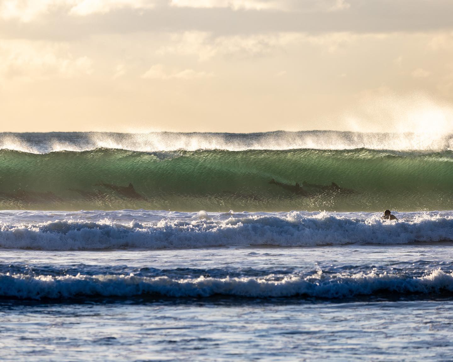 Une photographe australienne a trouvé son bonheur en capturant un groupe entier de dauphins surfant ensemble sur une vague à Manly, au nord de Sydney.