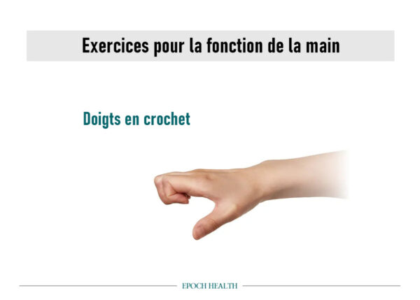 Étape 4 : maintenir cette position pendant trois secondes, puis tendre les doigts vers le haut.