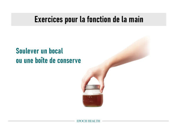 « L’arthrite peut rendre les mouvements de torsion associés à l’ouverture des récipients très douloureux, et de nombreuses personnes atteintes d’arthrite ont tendance à limiter le nombre de choses qu’elles font avec leurs mains, ce qui contribue à les affaiblir », a déclaré l’ergothérapeute Elizabeth Parris à Epoch Times.