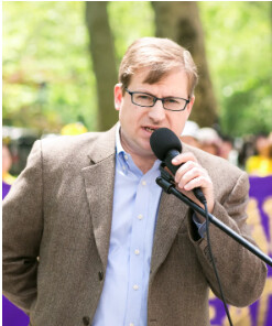 Levi Browde, directeur exécutif du Centre d’information sur le Falun Dafa. (Benjamin Chasteen/Epoch Times)En voyant d’autres personnes se faire arrêter par le FBI, les autres devraient se demander si l’argent et l’avancement de leur carrière valent la peine de se retrouver dans une prison américaine, dit-il.
