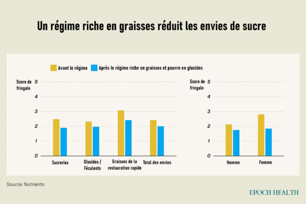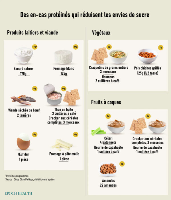 Steve Anton a expliqué à Epoch Times que la combinaison de graisses saines, de protéines et de glucides complexes (comme les légumes, les céréales complètes et les légumes-racines) dans notre alimentation aide à maintenir un taux de glycémie sain après les repas, contribuant ainsi au bien-être général. Ces macronutriments ralentissent la digestion, réduisant ainsi la vitesse à laquelle le glucose est libéré dans la circulation sanguine. En cas de déséquilibre entre les aliments consommés, l’organisme a du mal à maintenir un niveau d’énergie optimal, ce qui entraîne une chute rapide de la glycémie. En réaction, le cerveau envoie rapidement des signaux de fringale, tentant de faire remonter le taux de sucre dans le sang en nous encourageant à manger des aliments sucrés.