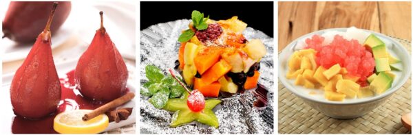 Il existe une multitude de variétés de fruits, des plus courantes comme les myrtilles et les bananes aux plus exotiques comme le durian et le mangoustan. Dans certaines régions tropicales et tempérées, le même type de fruit se décline en différentes variétés. Les nombreux types de desserts qui peuvent être préparés à partir de ces fruits sont tout aussi variés. En explorant les différentes possibilités, on s’aperçoit que l’utilisation de ces fruits permet d’obtenir des saveurs délicieuses et surprenantes tout en satisfaisant les envies de sucré.