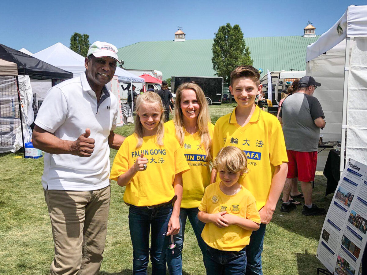 Environ une semaine ou deux après son appel, Jami Smith s’est arrêtée à une manifestation culturelle en dehors de la ville, où sa famille a reçu plusieurs fleurs de lotus et un prospectus sur le Falun Gong, une pratique spirituelle comprenant un ensemble d’exercices méditatifs et d’enseignements fondés sur les valeurs de vérité, de compassion et de tolérance.