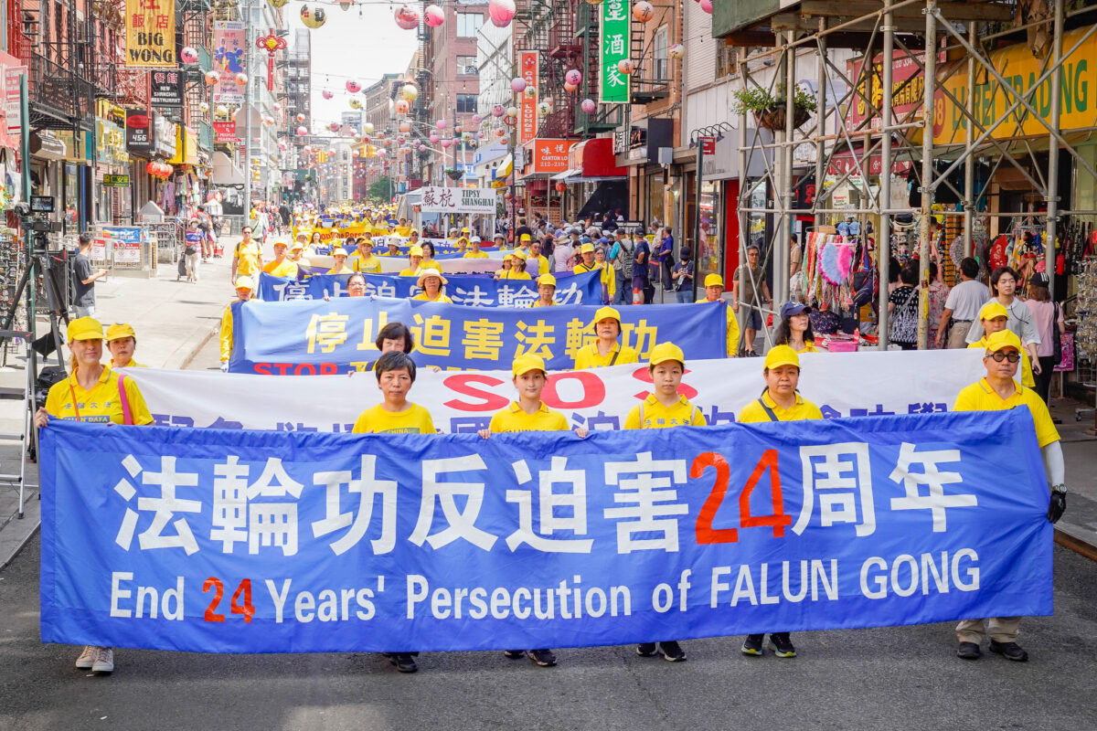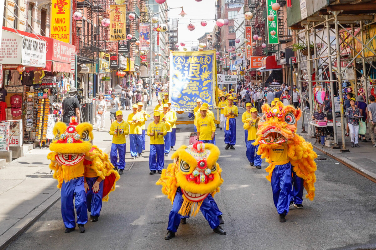 Le 15 juillet à Manhattan, plus d’un millier de pratiquants locaux du Falun Gong ont défilé dans le quartier chinois avec des bannières colorées, des chars et une fanfare pour commémorer cet anniversaire, faire connaître la persécution en cours et exprimer leur soutien aux 415 millions de Chinois qui ont quitté le PCC.