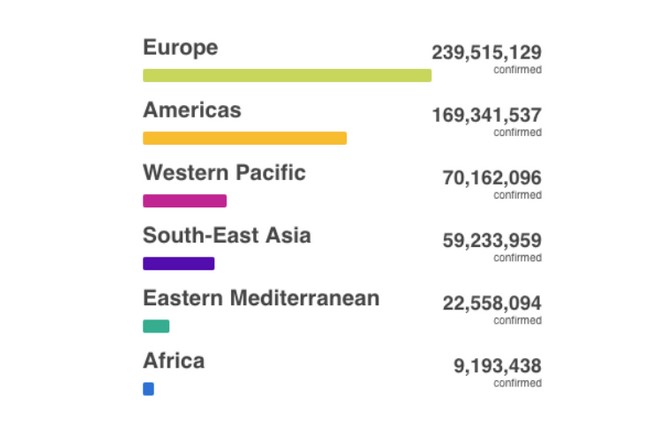 Selon le tableau de bord Covid-19 de l’Organisation mondiale de la santé, il y a eu environ 9 millions de cas confirmés et 173.900 décès dus au Covid en Afrique en juillet 2022.