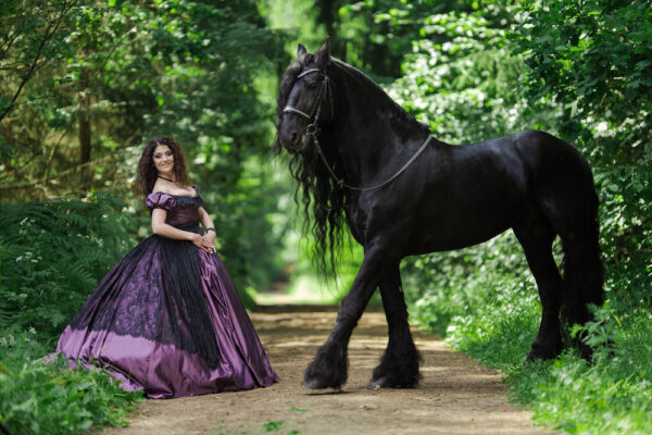 Célèbre pour sa beauté éclatante, le frison est une race séculaire, originaire des Pays‑Bas, dont la taille varie entre 1,50 m et 1,70 m. La majorité d’entre eux sont de couleur noire brillante, et leur port de tête haut ainsi que leur crinière, leur queue et leur robe magnifique en font des chevaux populaires pour le dressage de haut niveau et l’attelage.