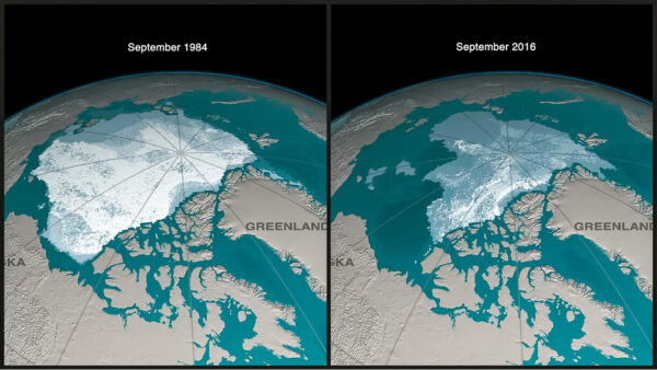 Près de 20 ans plus tard, en 1996, les concentrations de CO2 étaient passées à 362,58 ppm et le minimum annuel de glace de mer dans l’Arctique en septembre était passé à 2,93 millions de miles carrés (7,6 millions de km carrés).