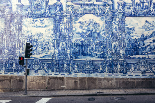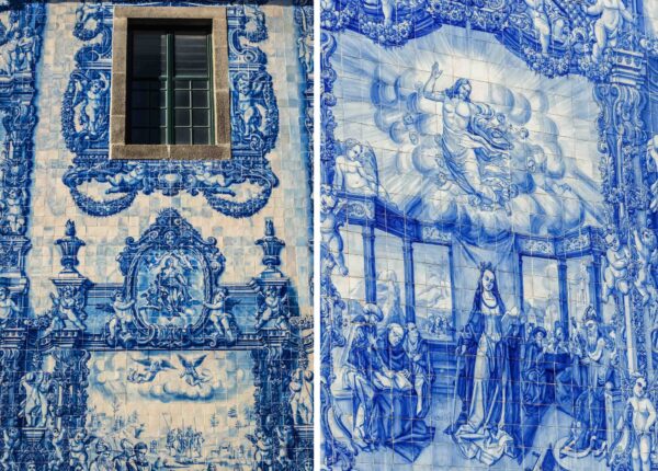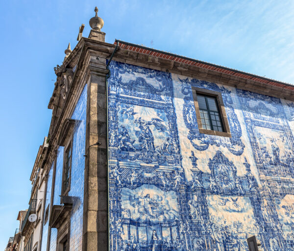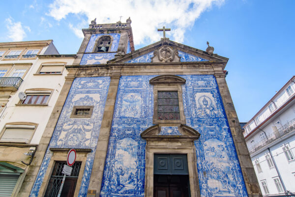 La Capela das Almas, ou Chapelle des âmes, est une église néoclassique du début du XVIIIe siècle à Porto, au Portugal, située sur la Ruа dе Sаntа Саtаrinа, dans le quartier commerçant animé de Sаntо Ildеfоnsо. Pourtant, l’église reste la présence la plus visible dans la rue en raison d’une caractéristique très spéciale : la chapelle est recouverte de près de 16.000 carreaux de céramique décoratifs, appelés « azulejos », d’un bleu et d’un blanc éclatants.
