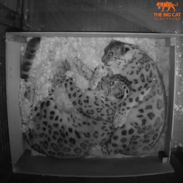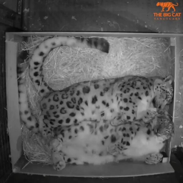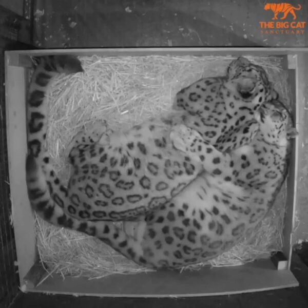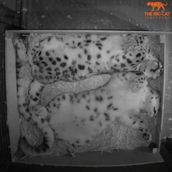 Chaque nuit, un couple de léopards des neiges vivant au Big Cat Sanctuary dans le Kent, en Angleterre, fait preuve d’une profonde affection. Tout au cours de la nuit, on peut les voir dormir dans leur tanière dans des positions très drôles et très mignonnes.