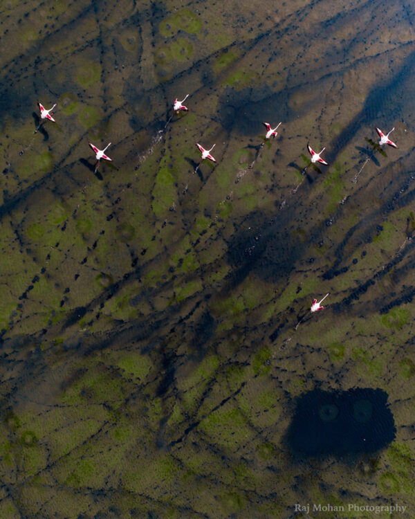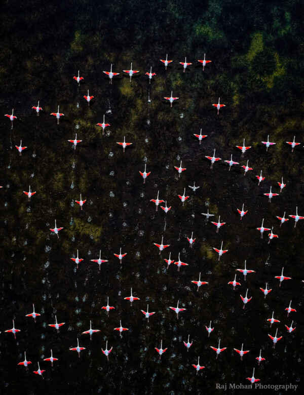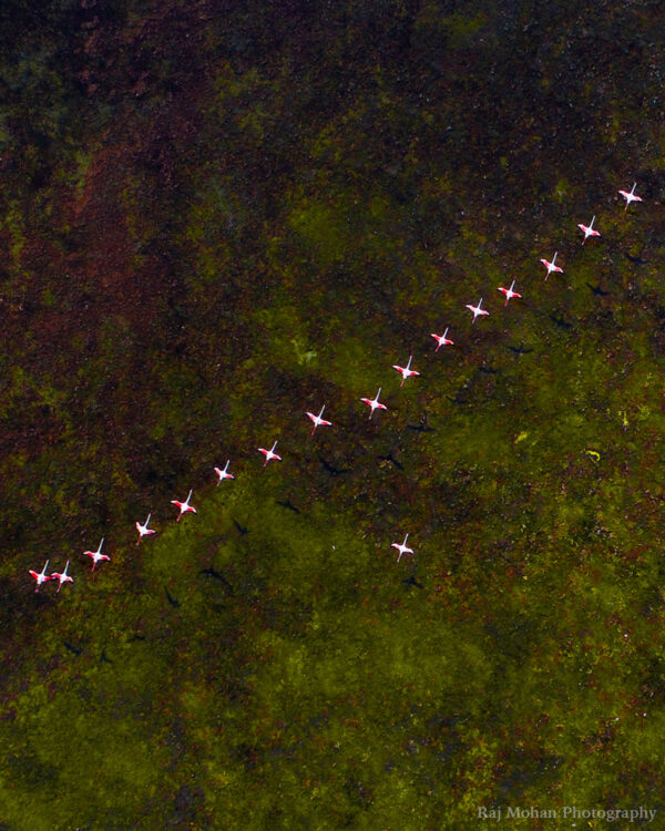 Voyageur et explorateur passionné, Mohan a passé des heures à observer la mer de flamants roses et lorsqu’il remarque un mouvement intéressant, il sait qu’il doit faire voler son drone pour voir ce qui se passe d’en haut. C’est ainsi qu’il a réussi à prendre des clichés qui ont ensuite été récompensés.