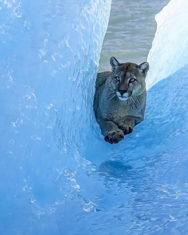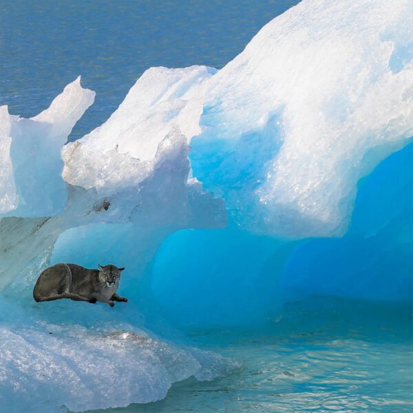 Pour le photographe Luis Alejandro Acharez, cette perspective a donné lieu à une scène de contrastes étonnants lorsqu’il a croisé le chemin d’un puma se reposant sur un iceberg flottant dans le parc national de Los Glaciares. La beauté du grand félin est mise en valeur par les teintes aigue-marine de la glace dans les montagnes argentines, et il est difficile de dire ce qui est le plus beau.