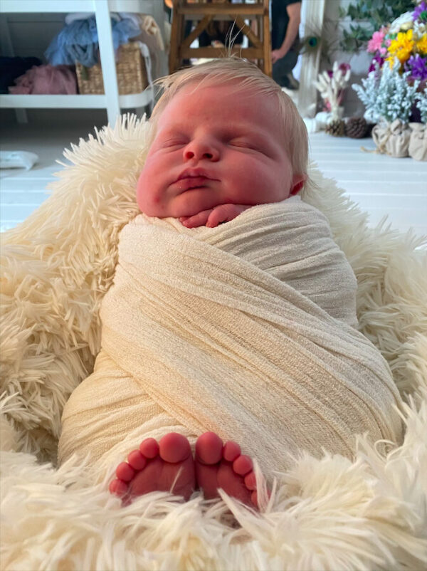 Les photos d’un bébé né avec une tête garnie de cheveux blonds font le tour du monde et il devient une « petite vedette »