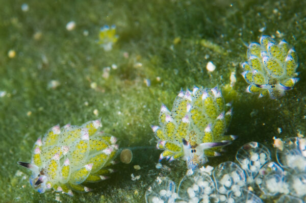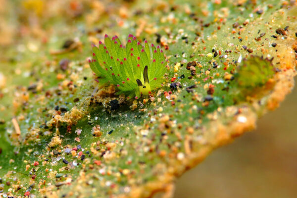 Ces créatures fascinantes, avec leurs cérates vertes mouchetées et bioluminescentes, ont été découvertes pour la première fois en 1993 au large de l’île japonaise de Kuroshima, selon le Fonds mondial d’information sur la biodiversité (Global Biodiversity Information Facility). Elles sont répandues dans tout l’Indo-Pacifique, où les plongeurs les appellent communément les « Shaun le mouton » de l’océan.