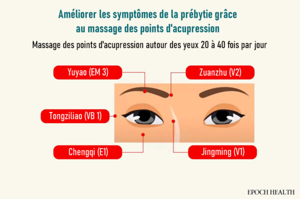 Masser 5 points d’acupuncture autour des yeux pour améliorer la presbytie et les cernes