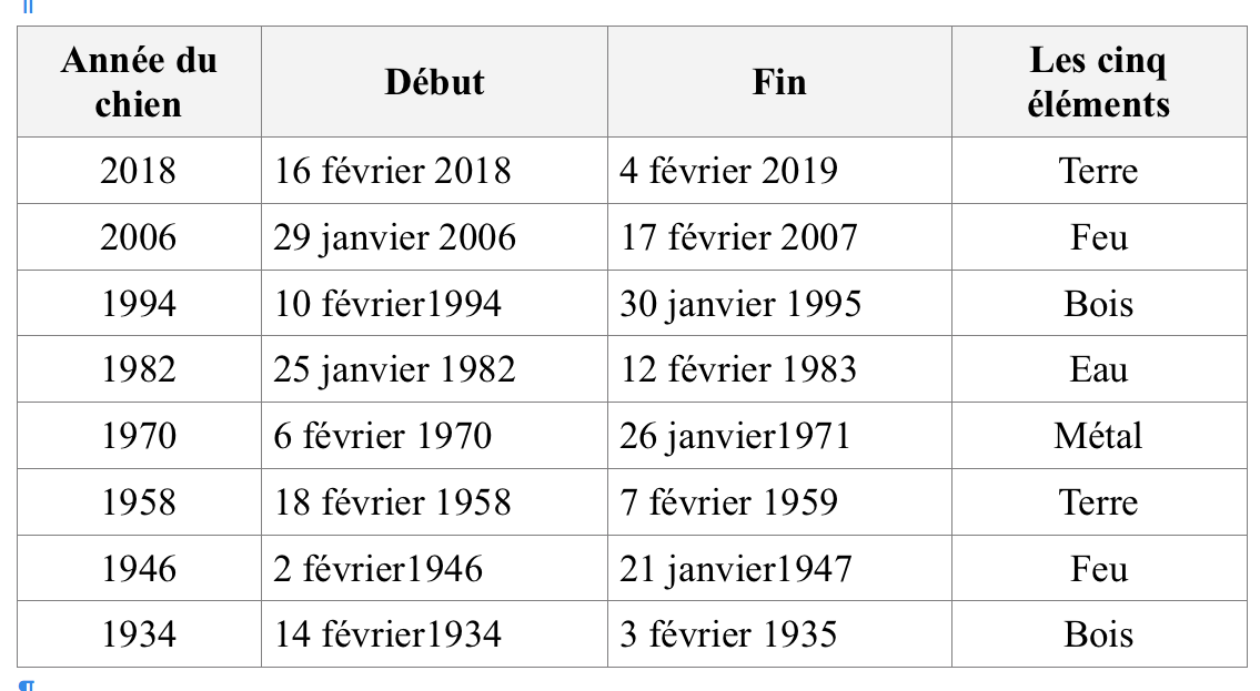Les personnes nées aux dates suivantes appartiennent au signe du chien: