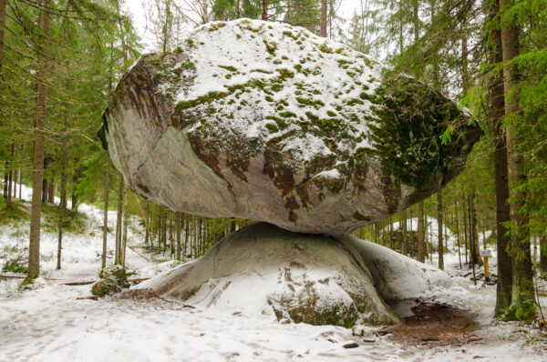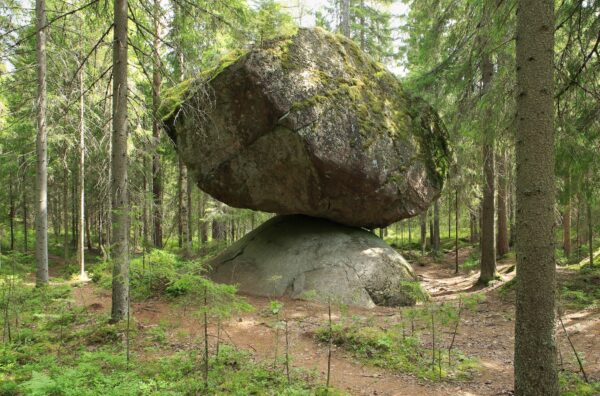 Dans une clairière forestière du sud-est de la Finlande se dresse un énorme rocher de 7 mètres de long et de 500 tonnes dont la seule taille suffit à vous surprendre. En plus, ce rocher est un “équilibriste” millénaire.