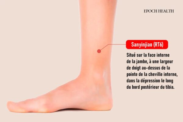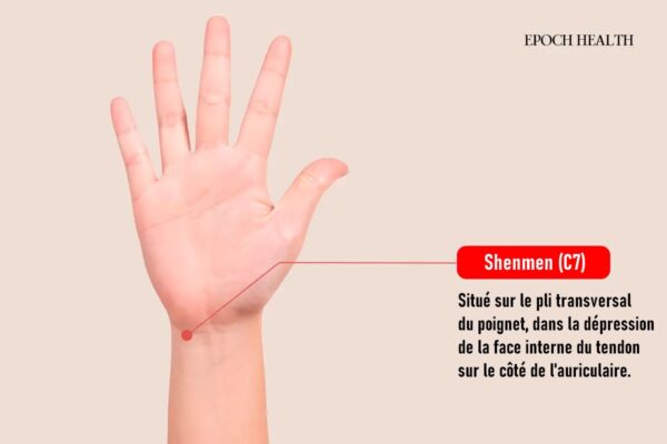 Dans la médecine traditionnelle chinoise, divers points d’acupuncture sont utilisés pour traiter l’insomnie, souvent par le biais de l’acupuncture. Par exemple, il existe un point d’acupuncture appelé « Shenmen » situé à l’arrière du poignet, et le point d’acupuncture « Sanyinjiao » se trouve à trois pouces au-dessus de la cheville intérieure. La piqure de ces points ou l’application de l’acupuncture à la racine centrale des cheveux sur le cuir chevelu, ainsi que sur le point « Shenmen » auriculaire, au-dessus de l’oreille, peuvent contribuer à améliorer le sommeil. Le massage de ces points d’acupuncture peut également avoir des effets positifs.