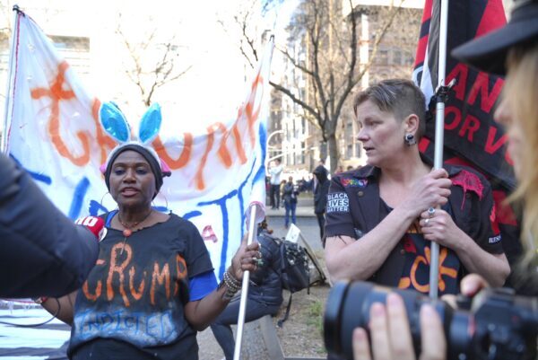 La cacophonie et les tensions se sont accrues avec l’arrivée de la députée républicaine Marjorie Taylor Greene, qui a brièvement pris la défense de Donald Trump avant de céder le porte-voix à un groupe d’experts conservateurs, dont Jack Posobiec. Une équipe de policiers new-yorkais a eu du mal à contenir la foule des médias et des participants lorsque Greene s’est frayée un chemin pour monter sur un banc.