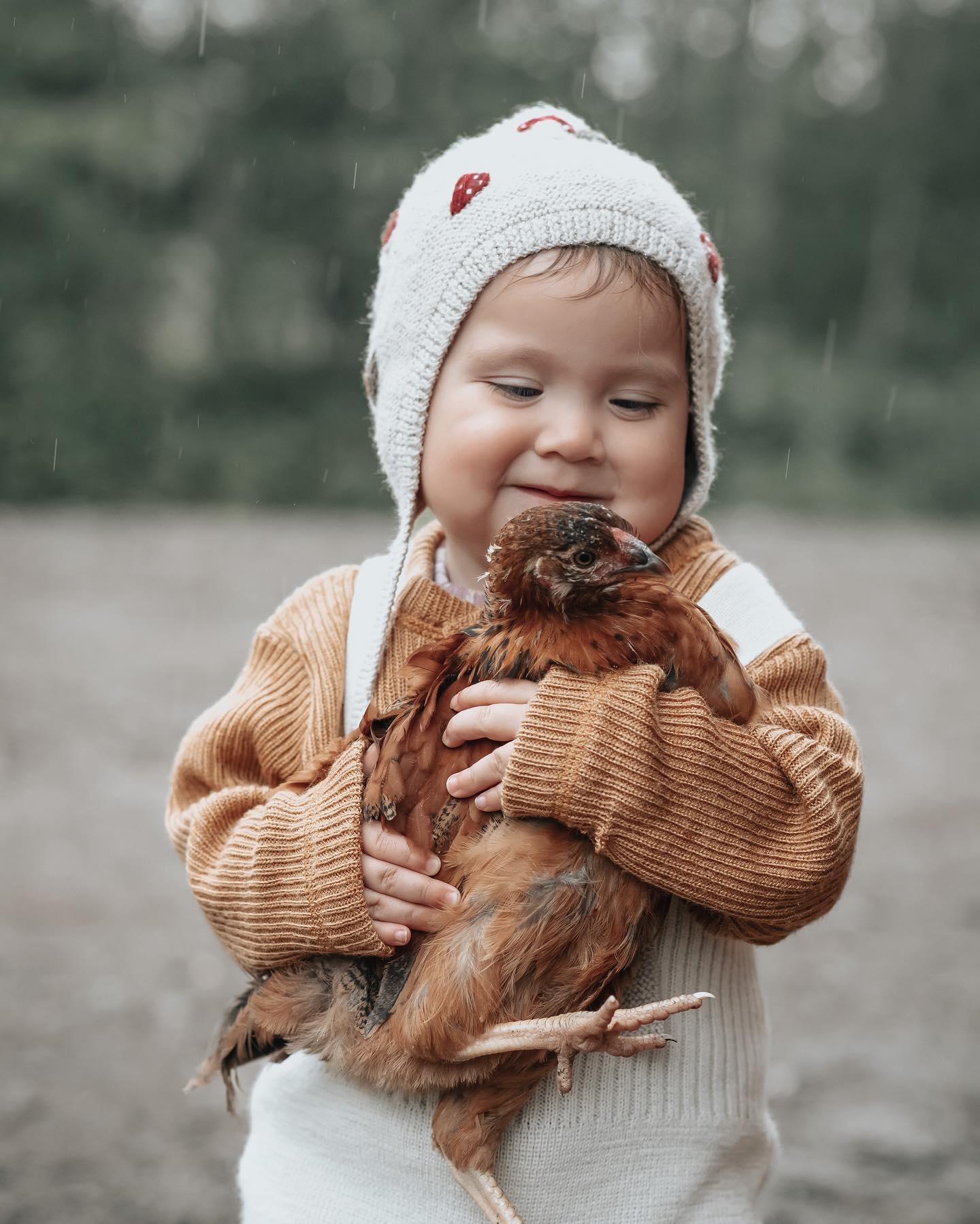 Certains diront que ce ne sont que des poulets, mais Leo, 1 an, adore ses amis duveteux. En les serrant contre elle, il est clair qu’elle adore ces petites créatures, qui semblent assez contentes dans ses petits bras potelés.