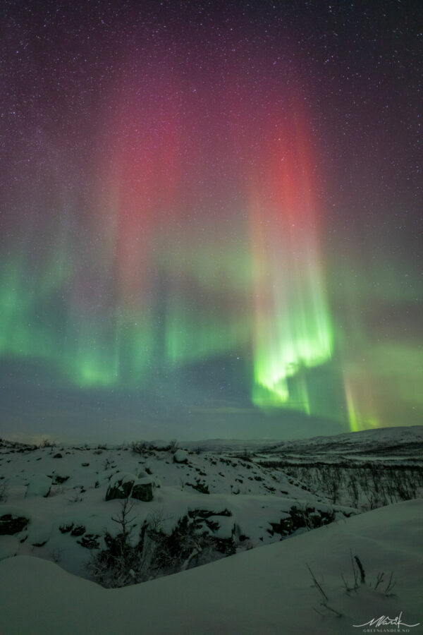 Markus a reçu son premier « vrai » appareil photo en 2008 et s’est progressivement tourné vers la photographie des aurores. Aujourd’hui, il utilise un appareil photo Canon 5DM4, qui offre une excellente restitution des tons rouges, et des objectifs Sigma, qui sont bien adaptés aux observations d’aurores à faible luminosité. Il cherche à capturer ces phénomènes impressionnants d’une manière originale et intrigante.