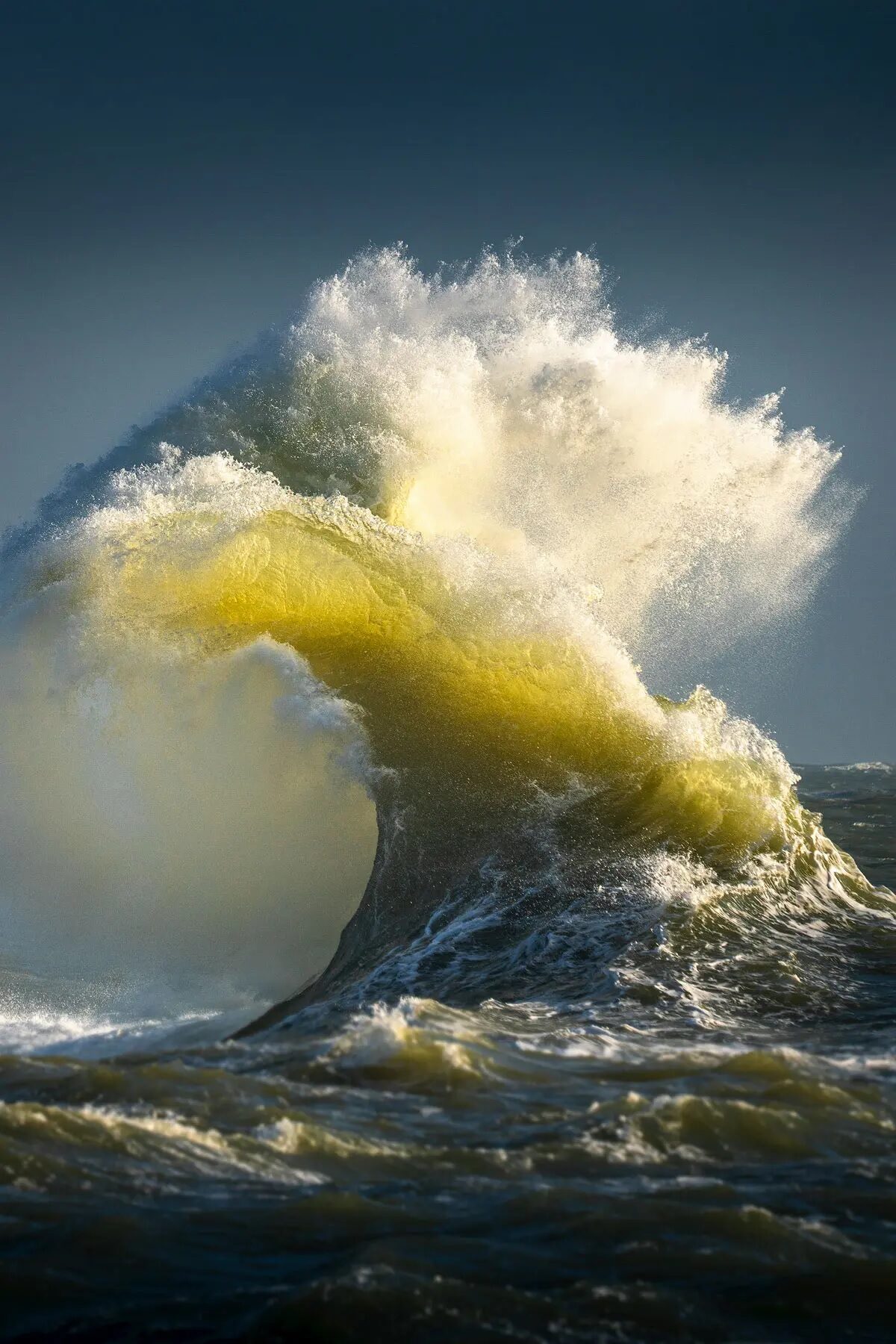 Il a fini par immortaliser le dieu de la mer lors d’une collision époustouflante entre des vagues déferlantes.