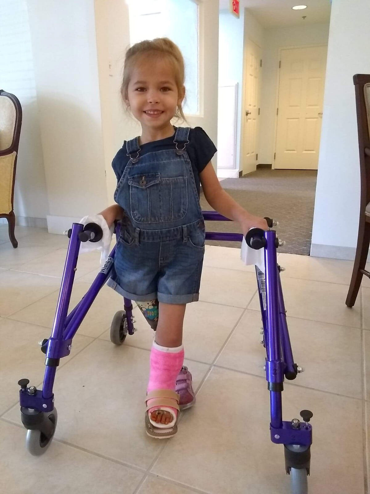 Une petite fille née avec les pieds en arrière marche à nouveau après une opération chirurgicale qui lui a sauvé la vie - elle rêve de devenir gymnaste