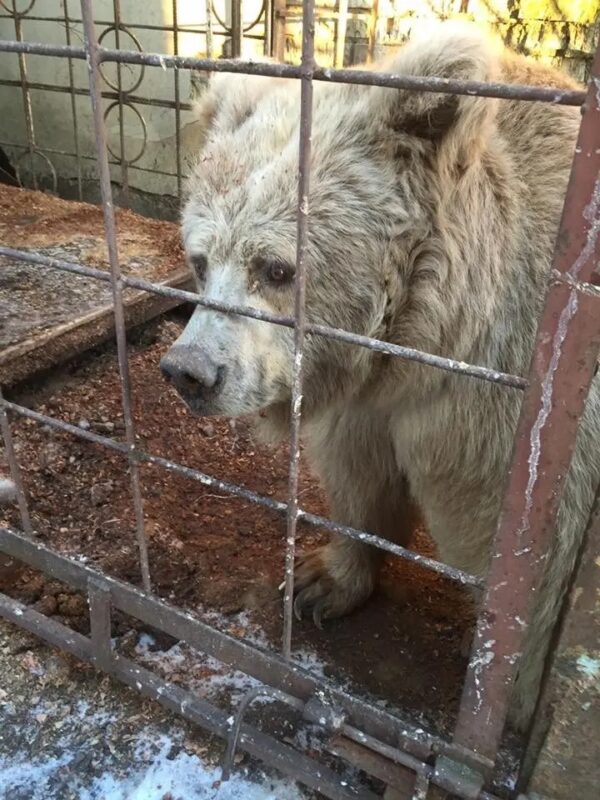 Après avoir appris l’existence de l’ourse captive, Mme Shkvyria et son équipe ont su qu’ils devaient agir rapidement. Dès 2019, ils ont orchestré un plan de sauvetage. Chada, qui était en surpoids et presque aveugle, a été transférée dans une caisse de transport. Elle s’est montrée « très agressive » en essayant de défendre son espace, mais elle a été surveillée par des experts et des vétérinaires pendant le trajet jusqu’à son nouveau sanctuaire, un terrain de deux hectares abritant quatre ours et deux loups.