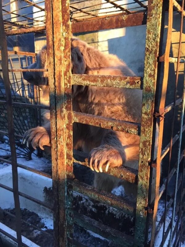 « Malheureusement, [Chada] faisait partie de notre cirque national ukrainien et elle a été exploitée pendant de nombreuses années », a déclaré Mme Shkvyria à Epoch Times, ajoutant que les anciens propriétaires de l’ourse l’ont « simplement laissée » à la station-service lorsqu’ils n’en ont plus voulu. « Pendant plusieurs années, les employés de cette station-service (…) l’ont nourrie et ont essayé de lui offrir quelques conditions », a-t-elle ajouté.