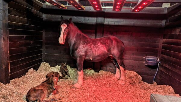Pourtant, dix jours plus tard, Sammy, une jument Shire, a donné naissance à un poulain mort-né dans le Leicestershire, à trois heures de route. Sa propriétaire, Cath Pegg, l’a proposée comme mère d’accueil sur les réseaux sociaux afin de ne pas gaspiller le lait de Sammy et d’aider la jument à guérir de la perte de son poulain.