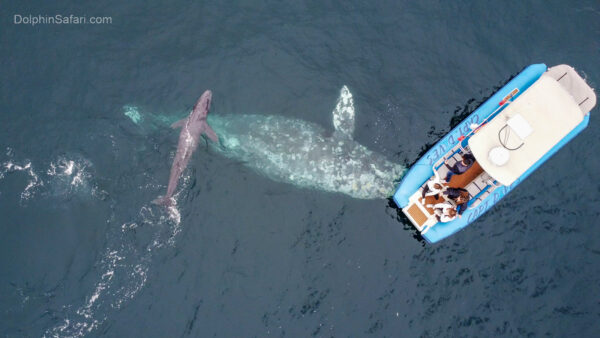 Le 2 janvier, le Captain Dave’s Dana Point Dolphin & Whale Watching Safari organisait une excursion d’observation des baleines au large de Dana Point, au sud de Los Angeles, lorsqu’une baleine grise femelle de 11 mètres et son baleineau nouveau-né, d’environ 4 mètres de long, sont apparus.
