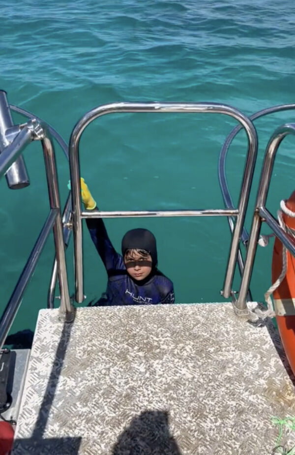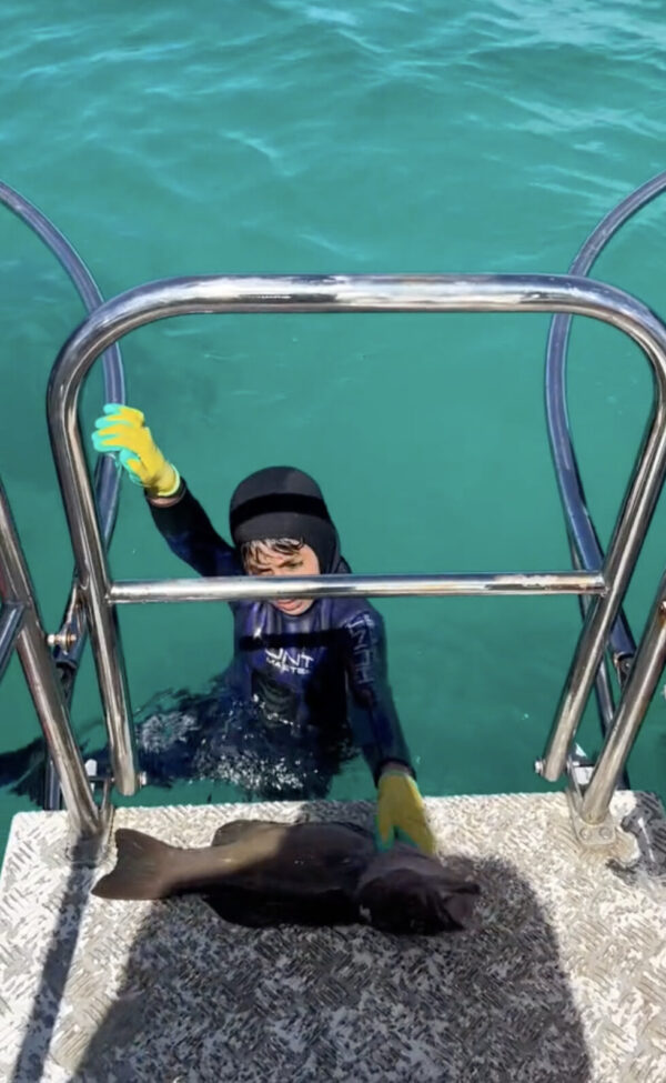 Manni Alam, originaire d’Australie, était en train de pêcher au harpon avec son père, Radwan Alam, près de la côte centrale du Queensland, lorsqu’il a attrapé un poisson. Sur les images postées sur Instagram, on entend Radwan demander à son fils : « Manni, montre-moi ce que tu as ! » Le garçon, encore dans l’eau avec sa combinaison, dépose sa prise sur le pont.