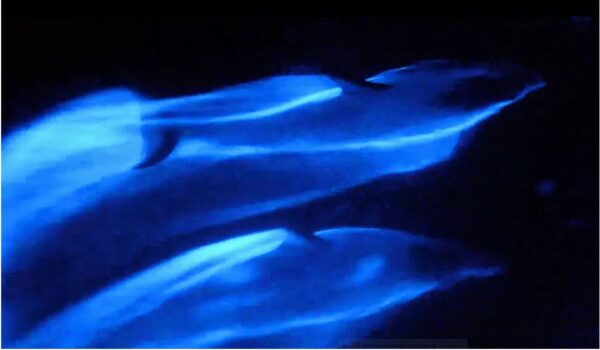 Un groupe de touristes en croisière ont été étonnés de voir des dauphins briller d’un bleu électrique alors qu’ils nageaient dans les eaux bioluminescentes du sud de la Californie.