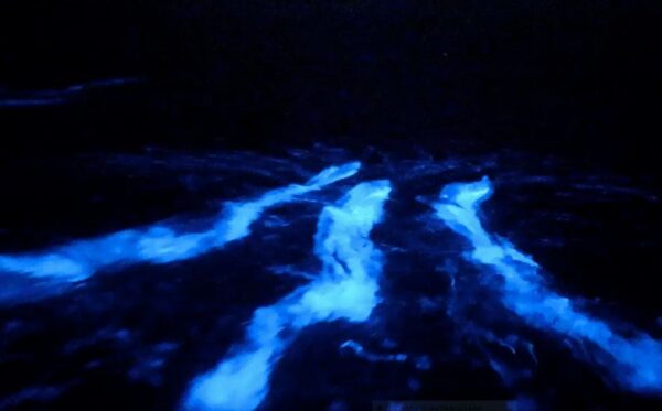 Expliquant que ce spectacle est causé par la prolifération de plancton photosynthétique, Mme Roame a dit : « Ces deux derniers jours, les vagues sont illuminées par la bioluminescence. Lorsque les vagues s’écrasent, elles remuent le plancton ; la même chose avec les bateaux qui se déplacent, les dauphins et les poissons qui nagent, tout ceci agite le plancton et crée cette magnifique lueur bleue. »