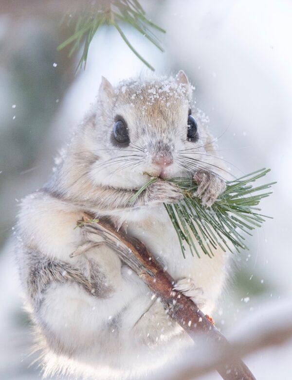 Les écureuils volants nains du Japon sortent le jour en hiver et c’est à ce moment-là que M. Shin aime les photographier :